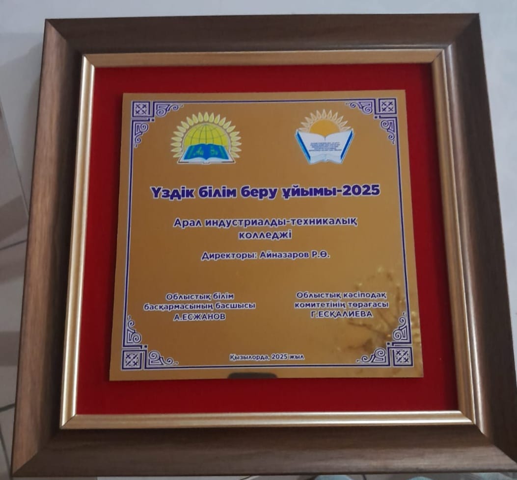 Арал индустриалды - техникалық колледжі 2025 жылдың қорытындысы бойынша «ҮЗДІК БІЛІМ БЕРУ ҰЙЫМЫ - 2025» номинациясына ие болды.
