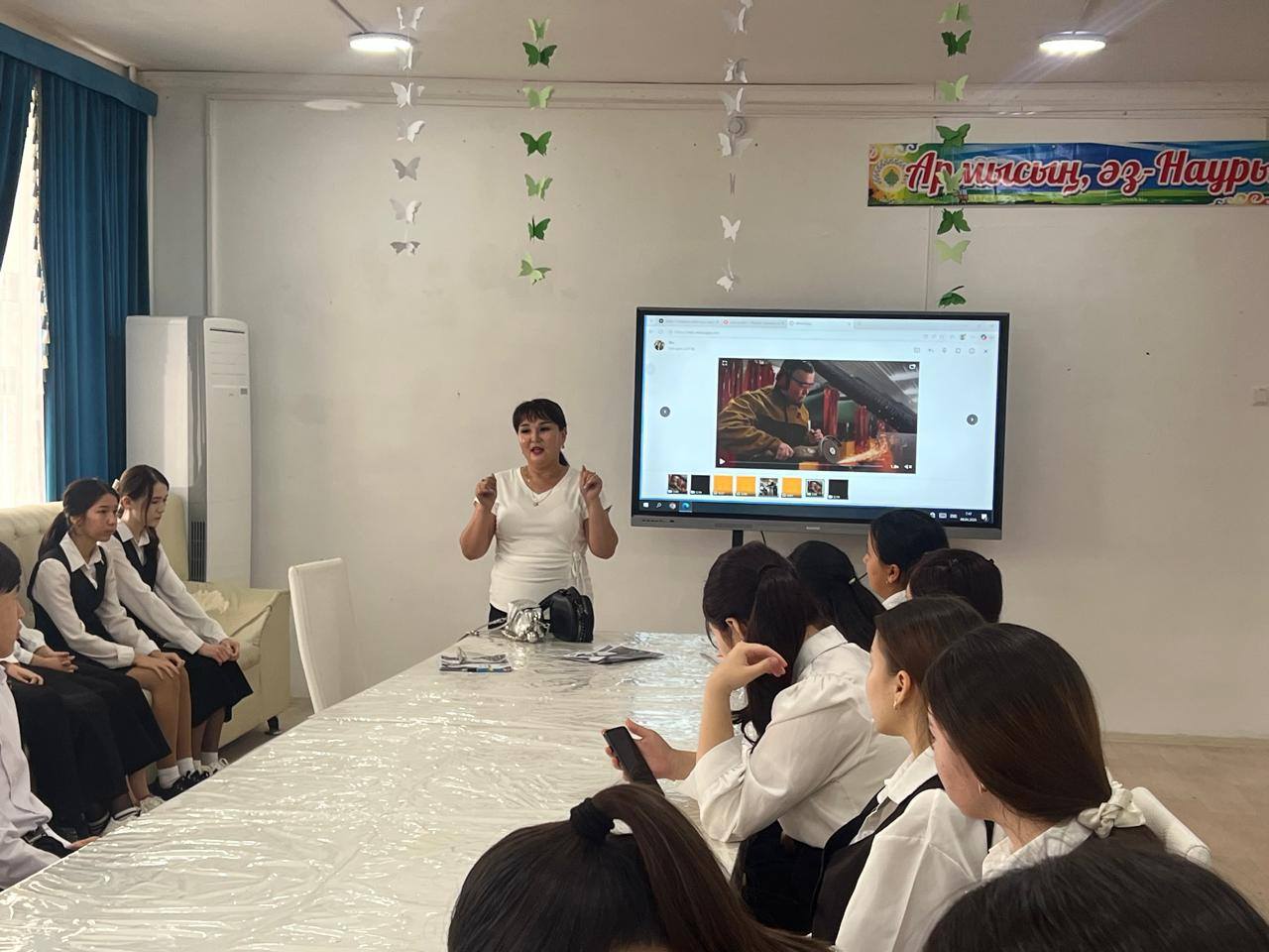 Осы игі бастамамен ауданымыздағы №220 орта мектебінде кәсіптік бағдар жұмысымен Ж.Кыркабакова, Н.Жиеналиева, А.Боташова мамандықтар жөнінде ақпарат беріп, түсіндірме жұмысын жүргізді.