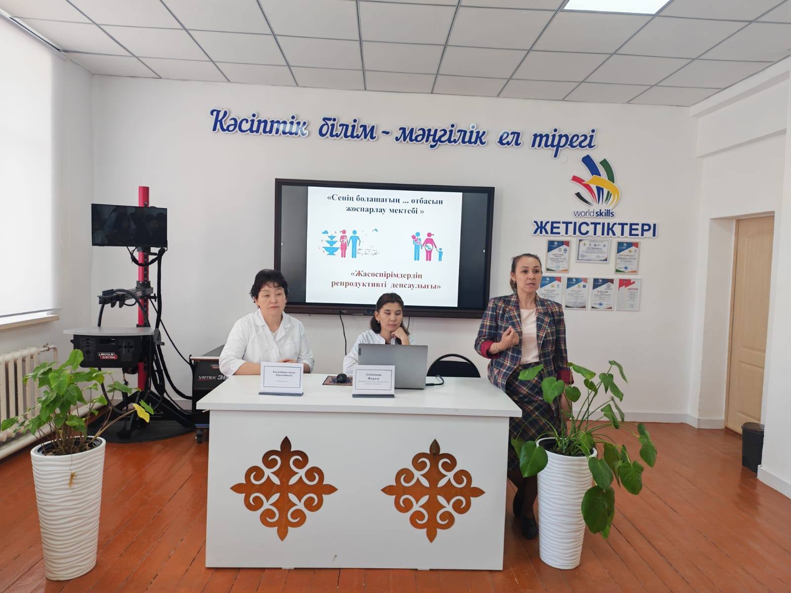 Кәмелетке толмағандар арасында Арал индустриалды - техникалық колледжінде «Сенің болашағың...отбасын жоспарлау мектебі» жобасын жүргізу жөніндегі түсіндірме жұмыстары жоспар бойынша 2026 жылдың 9 - ші сәуір күні өткізілді. Кездесуге «Арал аудандық көп бейінді орталық ауруханасы» әйелдерге кеңес беру орталығының акушер - гинекологы Әліпбаева Фариза Болатбекқызы, директордың тәрбие жұмыстары жөніндегі орынбасары Н.Жұмаева, колледж аяжаны А. Қосымбаева, колледж педагог - психологі А.Кенжебаева білімгерлерге «Жасөспірімдердің репродуктивті денсаулығы» тақырыбында түсіндірме жұмыстарын жүргізді. Жастарға денсаулықты сақтау, ерте жүктіліктің алдын алу, жеке гигиена, дұрыс өмір салты туралы ақпарат берілді.